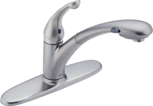 Delta 470-ARWE-DST Signature Single Handle Pull-Out Kitchen Faucet, Arctic Stainless