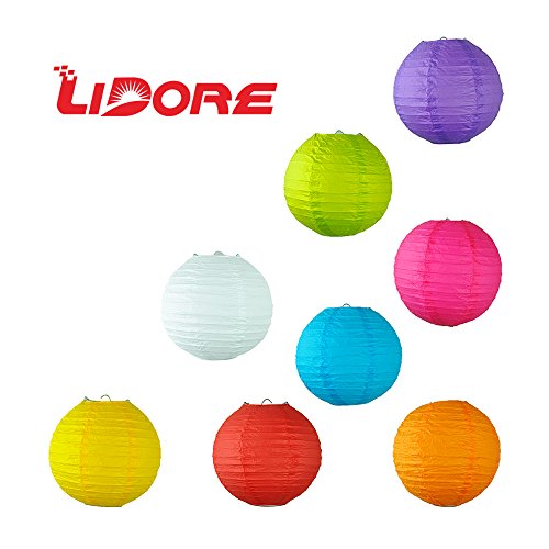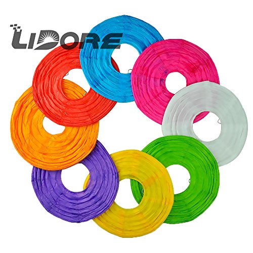 LIDORE 8 Pack Assorted Different Multi Color Chinese Paper Lanterns Lamps 8 Inch