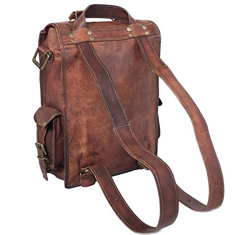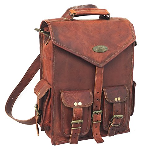 -. Title : RK Vintage Leather Macbook Briefcase 2-in-1 Leather School Bag Backpack Rucksack
