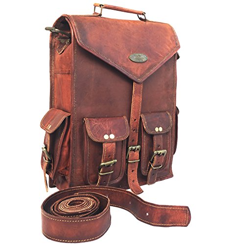 -. Feature : Imported / Dimensions : (approx) 15 X 11 X 5 inch. (height , breadth, inner depth ) - 38 cm X 27.9 cm X 12.7 cm . 36 inch shoulder drop (72 inch / 180 cm adjustable sling) Slightly Varies As each Bag Handmade. / 2in1 Bag Convertible backpack / Messenger bag / Briefcase Three partition inside for laptop,files etc. Has four outer small pockets for misc items.Can be used as an office bag, two zippered pockets at outer front and rear inner. / Comes with Steel buckles , 100% rust free. adjustable sling. Vertical leather laptop bag Can hold 15" Laptop. / High Quality Leather With Hiqh Quality Inner Stitched Canvas for Durability.The laptop partitions are padded. Note color darken with Use.