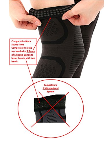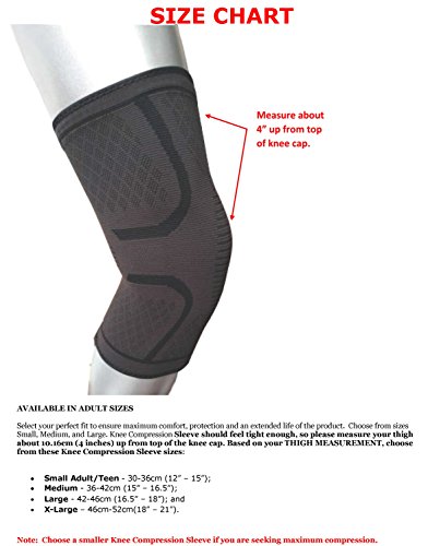 -. Feature : STABILIZED SUPPORT & PROTECTION - 3 rows of anti-slip silicone upper knee band provides stable support during moderate & rigorous activity without the restriction of a knee brace so it makes for the perfect running gear / ULTIMATE CROSSFIT - use the knee compression sleeve for support when Cycling, Running, Bikram Yoga, Basketball, Football, Hiking, Skiing, Weight Lifting, Pilates / JOINT PAIN RELIEF - knee compression sleeve increases blood flow, reduces inflammation, pain, and swelling, aides in quick recovery / MAXIMUM COMFORT FOR KNEE PAIN - multiple sizes including Special Edition X-Large - SEE SIZE CHART IN THE IMAGE GALLERY / MULTIPLE BENEFITS - knee compression sleeve limits patella movement, secures and stabilizes quick movement when using fitness equipment similar to a knee brace but without the bulk
