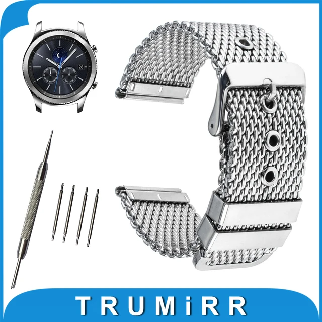 | [해외]22 미리메터 milanese sainless 스틸 시계 밴드 samsung gear s3 클래식/프론티어 핀 버클 스트랩 손목 벨트 팔찌 블랙 실버 |
