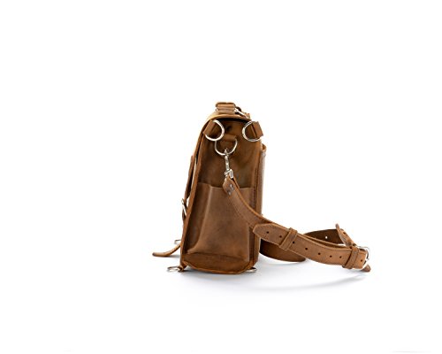 -. Feature : 100% FULL-GRAIN BOOT LEATHER: Crafted from tough, 100% Full-Grain Boot Leather, which takes hits well and looks even better with age. Full-Grain is the top layer of the cow skin which is the most expensive and toughest part. Thicker and more durable than the typical Ògenuine leatherÓ Leather Satchels. The leather becomes soft and supple as it ages. / STITCHED AND REINFORCED: Stitched with polyester thread that is used in airbags, ship sails and hiking boots. Polyester is about 4 times as strong as nylon and is also UV and saltwater resistant. / SMART DESIGN: Like our briefcases, this leather satchel bag converts to a backpack & has two exterior pockets and one interior pocket to make it both functional and stylish. ItÕs the perfect purse, handbag or even briefcase bag. Perfect for holding iPads, tablets, small laptops, books, & more. / FOR MEN AND WOMEN: Our classic design is perfect for both men and women. / NO BREAKABLE PARTS: No zippers, snaps, buttons, or plastic. This leather satchel was built to last.