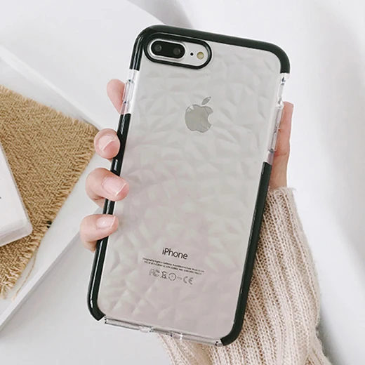 Features:Fashion Simple Diamond Pattern Back Cover Soft Clear Case