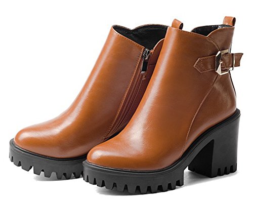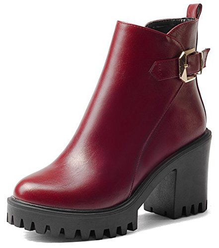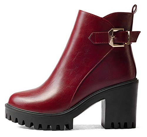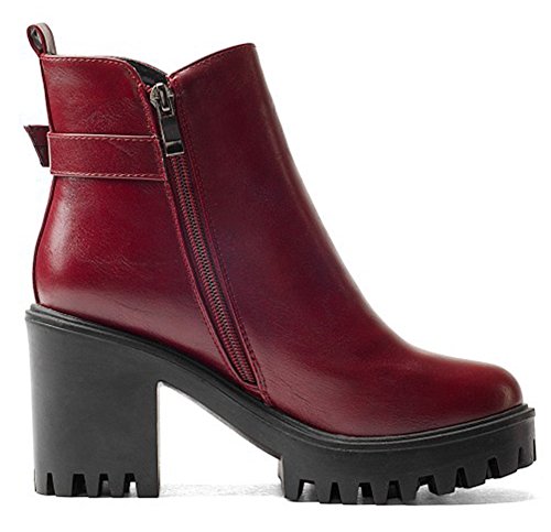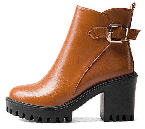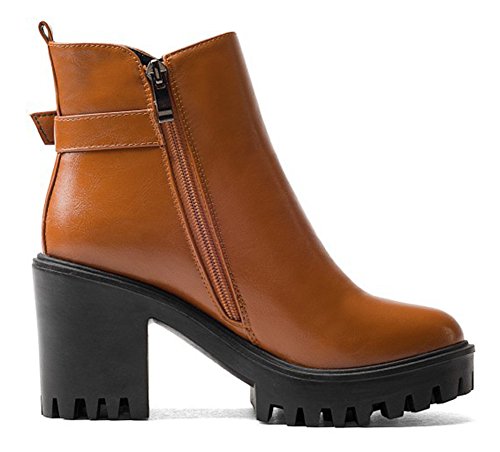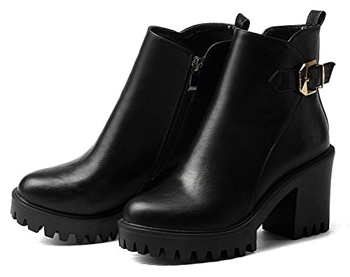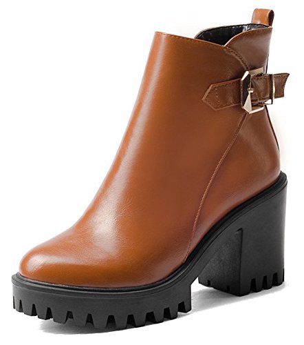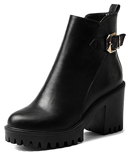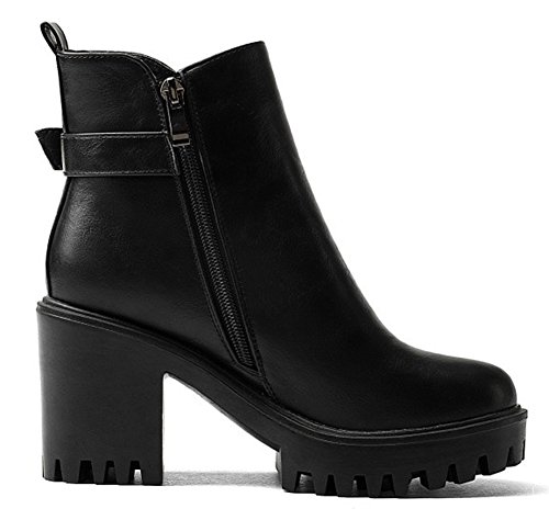 (Aisun)/Women's/Boots/DIRECT FROM USA/Aisun Women's Casual Buckle Strap Block High Heel Booties Platform Inside Zip Up Round Toe Ankl...