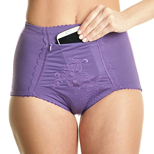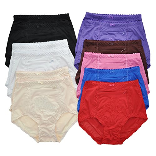 Angelina 12-Pack Cotton High-Waist Embroidery Zipper Pocket Girdles #906_12_XL