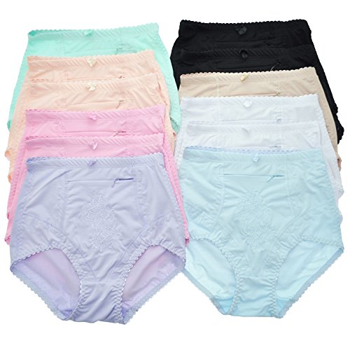 Angelina 12-Pack Cotton High-Waist Embroidery Zipper Pocket Girdles #906_12_L