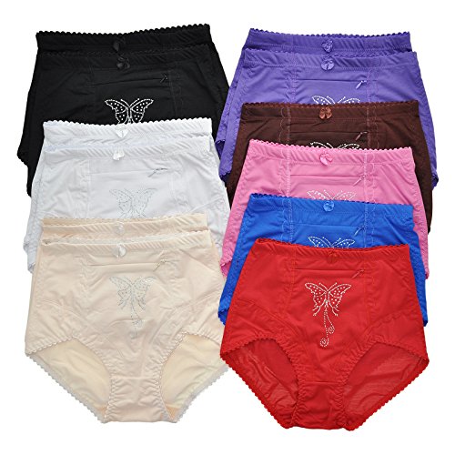Angelina 12-Pack Cotton High-Waist Embellished Zipper Pocket Girdles #908_12_XL