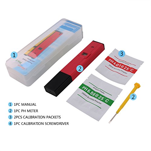 -. Feature : 0.1 PH High Accuracy Water Quality Tester Pen Portable Pocket Size Digital PH Meter / Portable and light weight, carry everywhere freely and easily, or be put in any packet and bag / Highly accurate for measuring range of 0.0-14.0 pH, 0.1 pH resolution, easy to use, with LCD display, make reading more clear, reliable and quick / Easy to calibrate,follow the instruction on the provided packet of solution 4.01 or 6.86, immerse the pH tester in the solution and adjust with the provided screwdriver to dial it in / Suitable for testing pH balance of drinking water, pool, food, wine and beer making, aquarium, RO system, Spa, hydroponics and more