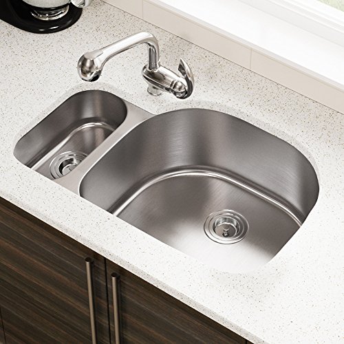 CONTEMPORARY STYLING -- The primary bowl is the trendy D-shape; front-aligned with the prep bowl to allow for a fashionable off-center faucet installation