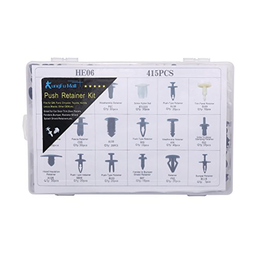 KUNGFU MALL 415PCS CAR RETAINERS DOOR BUMPER TRIM CLIP RIVETS PUSH PIN FASTENERS KIT FOR FORD HONDA CHRYSLER GM NISSAN WITH REMOVAL TOOLS