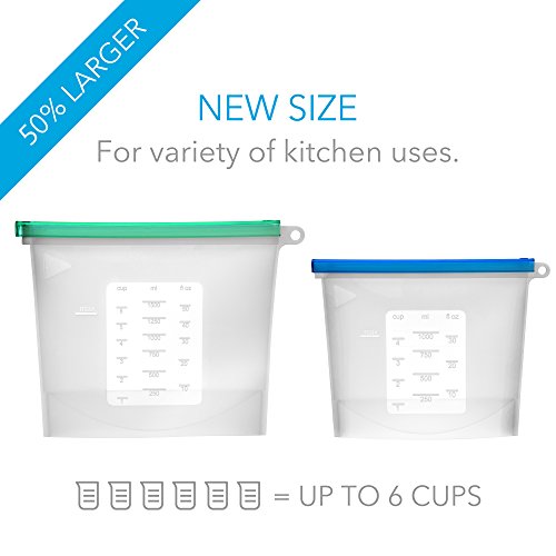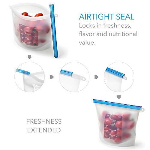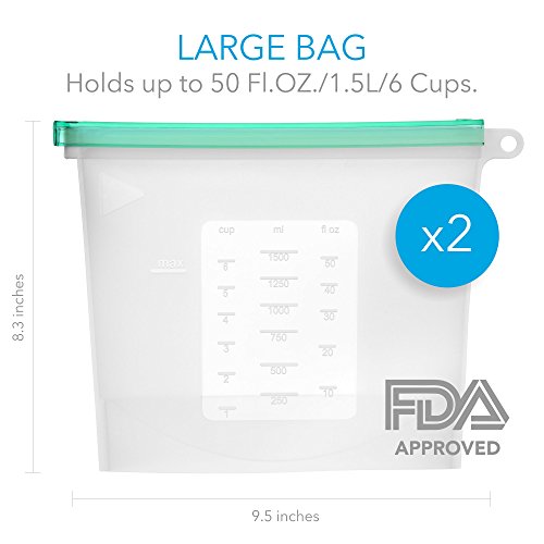 Reusable Silicone Food Storage Bag Set of 3 - LARGE SIZE 50 OZ - Airtight Zip Seal Bags Keep Your Food Fresh. Bag For Cooking, Sous Vide, Lunch, Snack, Sandwich, Freezer. Kiva.World (50+30 OZ, Clear)
