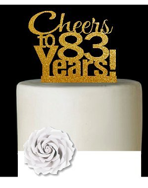 CakeSupplyShop Item#083CTA - 83rd Birthday / Anniversary Cheers Super Gold Glitter Sparkle Elegant Cake Decoration Topper