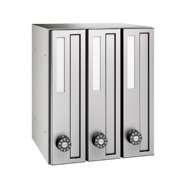 | 仕様 | 完成品 錠:静音ダイヤル錠※開錠番号指定不可 単体質量:5.2kg(3戸用) 投入口サイズ:25×328mm 接続方式:直径4mmナイロンプッシュリベット |