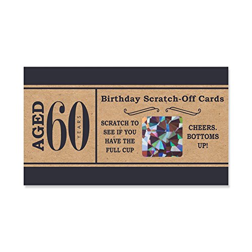 -. Feature : 60th Milestone Birthday - Dashingly Aged to Perfection - Party Game Scratch Off Cards - 22 Count / Each game has 2 "winner" cards and 20 "loser" cards / Cards measure 2.75" tall x 4.75" wide / Cards are P.R.Inted on heavy card stock with the game on the front and a pattern on the back / Made in the USA