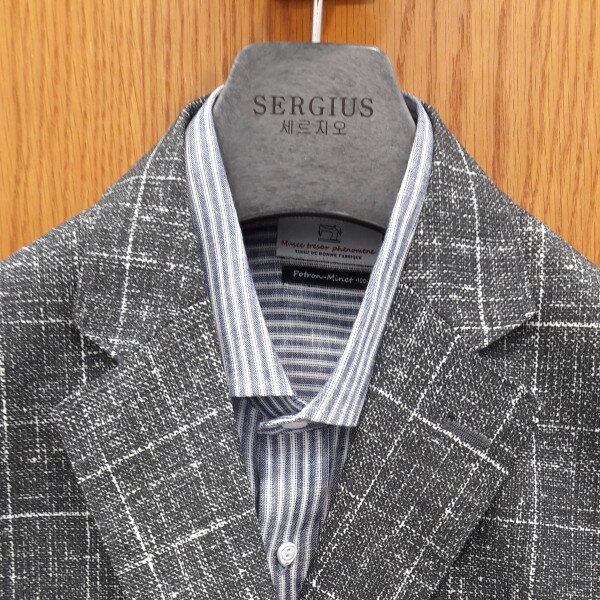에스에스패션핫아이템자켓타공법을적용해통풍성이좋고스트레치성소재로구김이없는비지니스자켓은은한그레이체크가고급스러움을줌