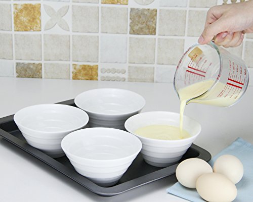 Perfectly sized for single serve desserts and souffles. The 8.5oz ramekins measure 4.6’’ in diameter and 2.3’’ high. Ideal for serving dips, salsas, ice cream, dessert, condiments, dressings, sauces, appetizers, candies, side dishes like olives and bruschetta, etc. The possibilities are endless.