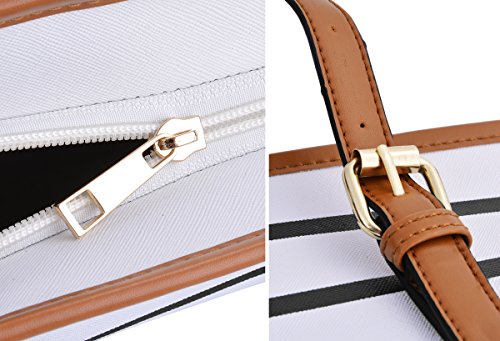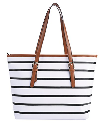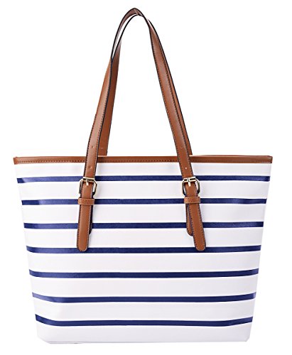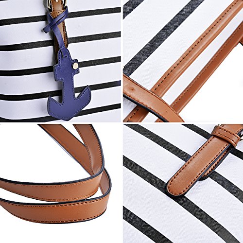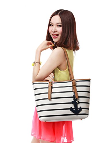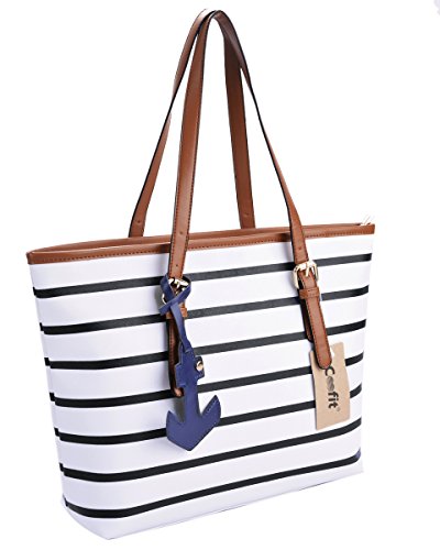 -. Title : Coofit Stripes Tote Bag Womens PU Leather Handbag Purse with Sea Anchor Pendant