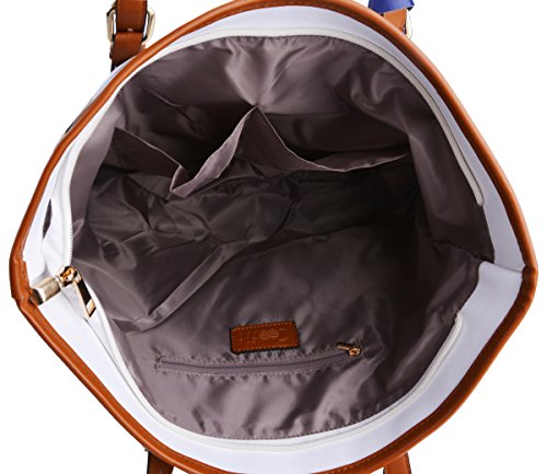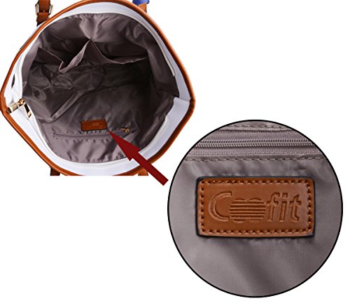 -. Feature : Coofit Brand product: Material Updated and Design Updated; Updated the poor quality material to high quality material and the lining inside; Designed with removeable sea anchor pendant, if you are not a HUGE fan of the sailor look, you can remove the navy anchor (cuts off easily) / The bag is made of Polyurethane and 2 faux leather handles that attach to the side via a buckle. You can easily adjust the height of the straps just as you would adjust a belt buckle / The inside of this bag has a nylon type material that is easy to clean if something were to spill on it. There is a medium sized zippered pocket on one side and 2 medium sized open pockets on the other side. The rest of the inside is just a large open space, there are no separators or dividers on the inside. The bottom of the bag has 4 feet.The feet help to raise it off the ground keeping the bottom of the bag clean / It is very stylish and it is a perfect bag/purse for the summer , you can use it for boating or to take to the pool; It's big enough for a laptop, a large wallet and a few notebooks / Dimensions: 44 x 30 x 13 cm/17.3 x 11.8 x 5.1 inches (W x H x D)