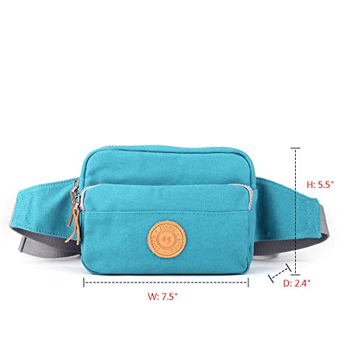 -. Feature : Material: Premium quality canvas.Made of high density washed cotton canvas and, classical and fashion.Dimensions: 7.5" W x 5.5" H x 2.4" D / High quality nylon zipper,long life.excellent craftmanship,Nylon suture,bearing well. / 2 MAIN POCKETS - Perfect size hip bag for women, or children and their belongings like cell phone, cash, credit card, and concert tickets.Zipped front and back pocket for on demand storage. / Adjustable strap.Closed zipper to prevent things fall out.It is safe to collect your bank card or dollar on it. / A great gift choice, it's fit for outdoor, travel, shopping, beach, Sports, Fashion.It will make your outdoor life more comfortable.