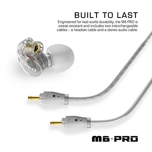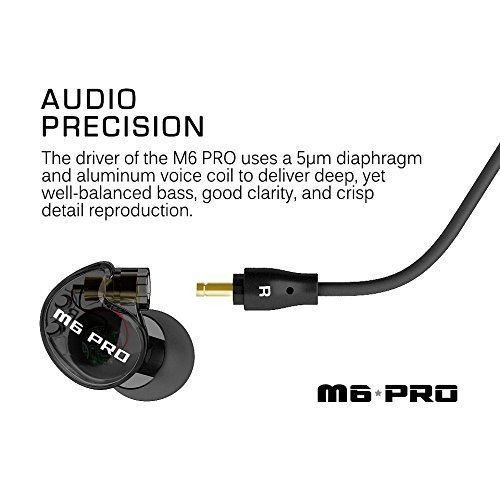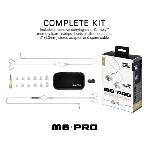 ReleaseDate : 2015-01-01 Studio : MEElectronics Publisher : MEElectronics Binding : Electronics Product Description With a durable, comfortable design and great sound, the M6 PRO In-Ear Monitors are an all-in-one audio solution for gym, stage, and street. Flexible over-the-ear memory wire and seven pairs of eartips provide a secure, personalized fit for all ears. An ultrathin 5m driver diaphragm and aluminum voice coil deliver clear, full-range sound with deep, yet balanced bass and crisp detail reproduction. Engineered for real-world reliability, the M6 PRO features detachable, user-replaceable cables and sweat resistance. Comply memory foam eartips reduce external noise, enabling safer listening volumes. 0