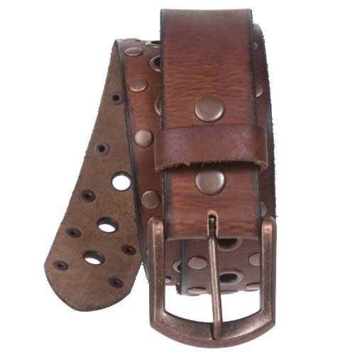 -. Title : Snap On Soft Hand Oil-Tanned Vintage Grommets & Studs Solid Leather Belt