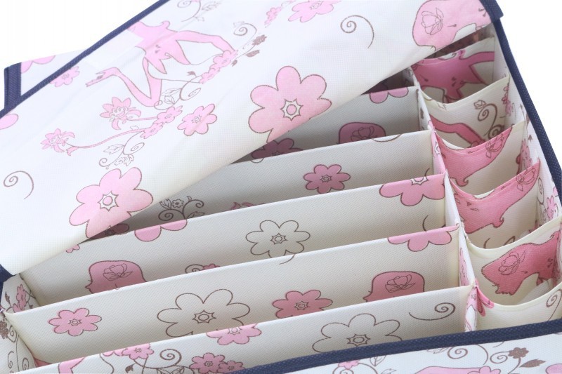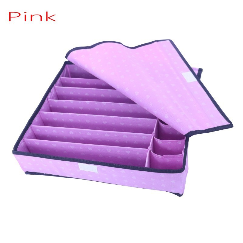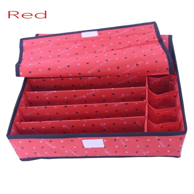 | 1PCS 14Cell Folding Storage Box For Bra Underwear Closet Organizer Drawer Divider Container Beige Red Rose |