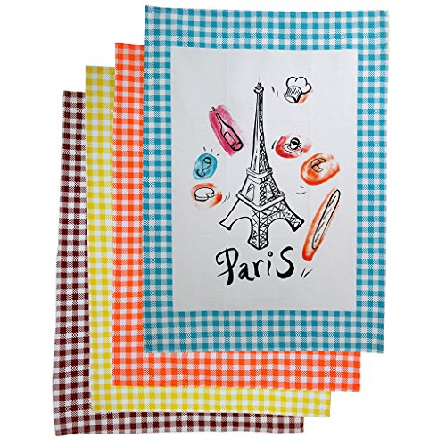 Paris Bistro Cotton Tea Towels - Set of 4 assorted