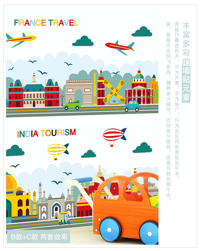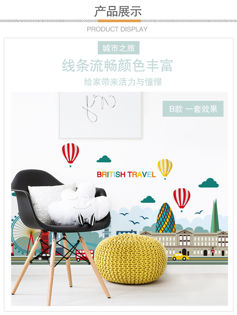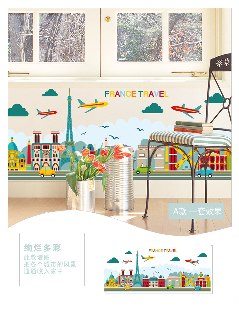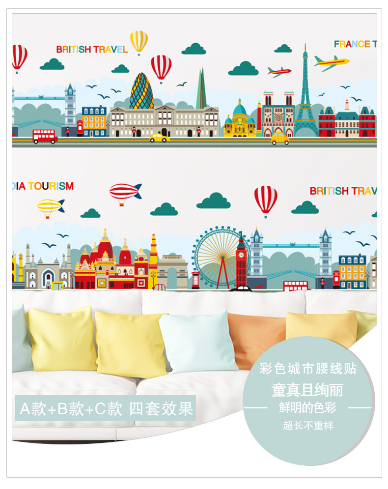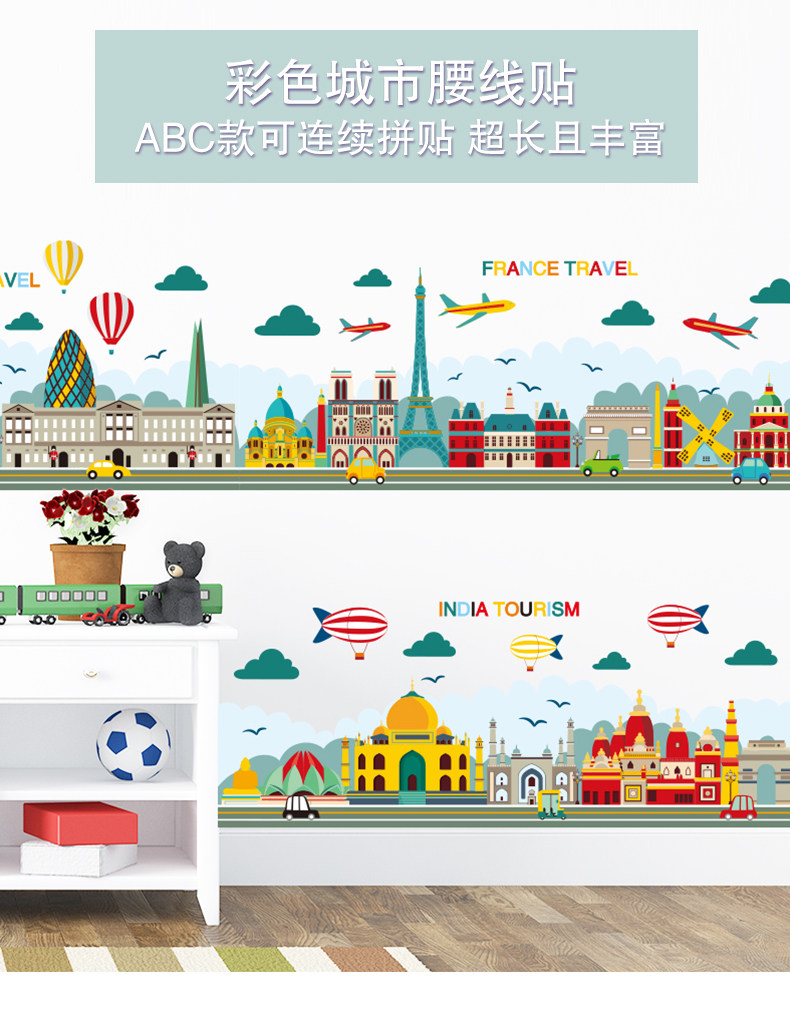 自粘贴纸幼儿园儿童房墙壁装饰品抽象几何图案贴画彩色城市腰线贴 自粘贴纸幼儿园儿童房墙壁装饰品抽象几何图案贴画彩色城市腰线贴