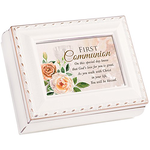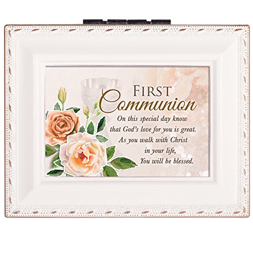 First Communion Special Day Ivory Colored Petite Square Keepsake Jewelry Box