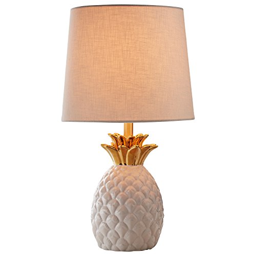 Rivet Modern Pineapple Ceramic Table Lamp, 18"H, White and Gold