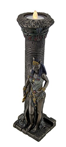 Resin Statues Egyptian Goddess Bastet Leaning On Pillar Statue 3 X 10.75 X 4.5 Inches Brown