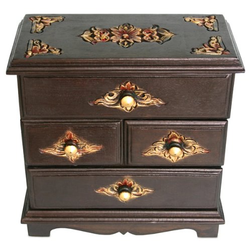 EXP Handmade Hand-Etched Teak Wood Jewelry Box/Organizer with Velvet Lining