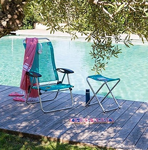 Lafuma Low Elips - Alu brut Aluminum Frame - Emeraude Batyline Fabric - Folding Beach Chair wi...