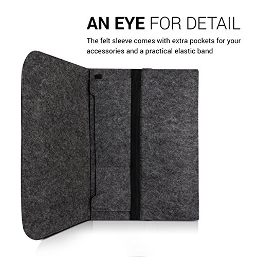 - WE HAVE AN EYE FOR DETAILS: Next to the main compartment for your notebook, this protective case is also provided with two sewed-in pockets for additional accessories (e.g. USB cable, charging cable or mouse) and also includes a safe closure made of a high-quality anti-slip rubber band. Inner dimensions: approx. 34,5 x 26 cm