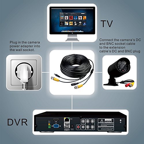 Masione 4 PACK 150ft Video Power Security Camera Extension Cable Wire for CCTV DVR CCD Security Cameras Surveillance System with BNC to RCA Adaptor