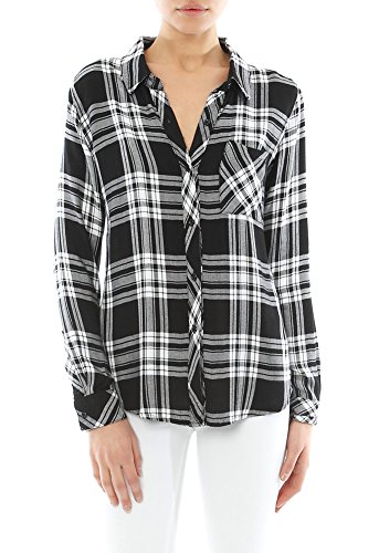 Woven plaid button-down long sleeve shirt,single pocket