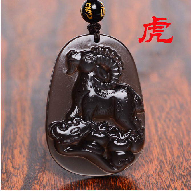 龙宫正品开光羊年宋韶光黑曜石吉祥物【属虎招财进宝】吊坠