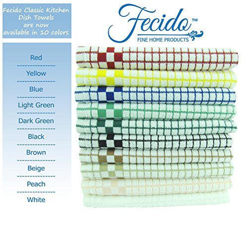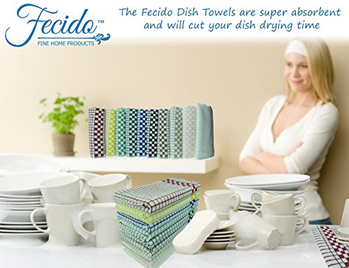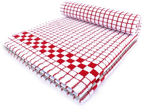 Fecido Classic Kitchen Dish Towels with Hanging Loop - Heavy Duty Absorbent Dish Clothes - European Made 100% Cotton Tea Towels - Set of Two, Red