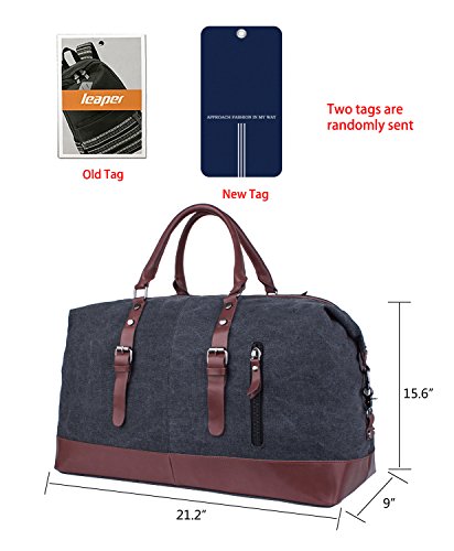 Material: High quality heavy duty and durable canvas + PU leather trim stitching handcraft, bottom Rivets + Smooth Zipper. NOTE: We have updated the tag, two tags are randomly sent. We appreciate your understanding.