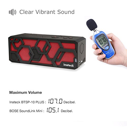 Inateck Tragbarer Hi-Fi Wireless Bluetooth 4.0 Lautsprecher Bassverstarker mit 15 Stunden wiederaufladbaren Batterien exakt em bassverstarker [Modell: BTSP-10 Plus]