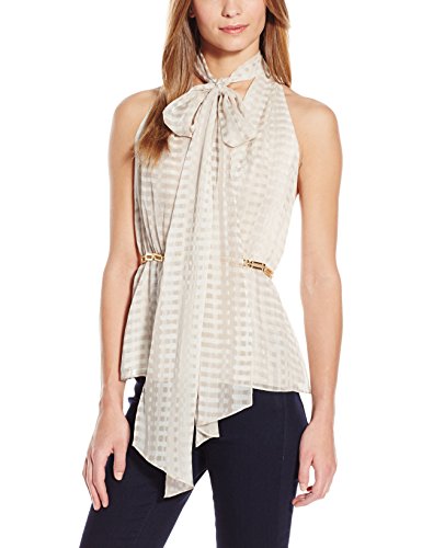 Sleeveless deep v neck top with scarf and square link waistband detail