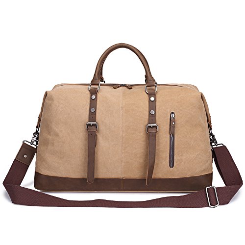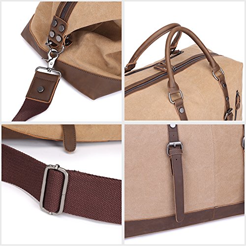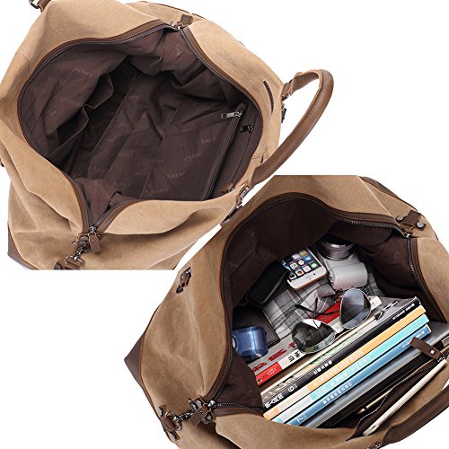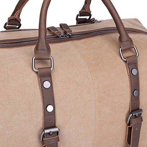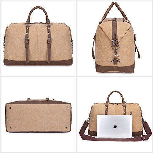 -. Title : Kaukko Unisex Vintage Oversize Canvas Leather Duffel Travel Tote Bag
