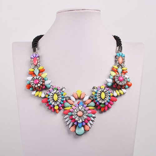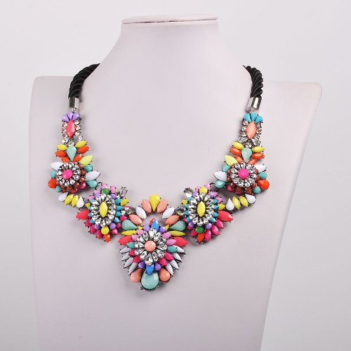 - Title : Jane Stone Bib Fashion Chunky Black Rope Chain Necklace Fancy Prom Jewelry for Women (Fn0466)