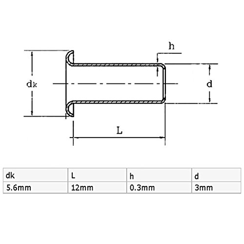 Uxcell a16032800ux0881 Rivet 3Mm x 12Mm Double Sided Brass Hollow Rivets Grommets Tool 100 Pcs