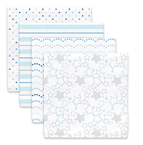 SwaddleDesigns Cotton Muslin Swaddle Blankets, Set of 4, Blue Starshine Shimmer