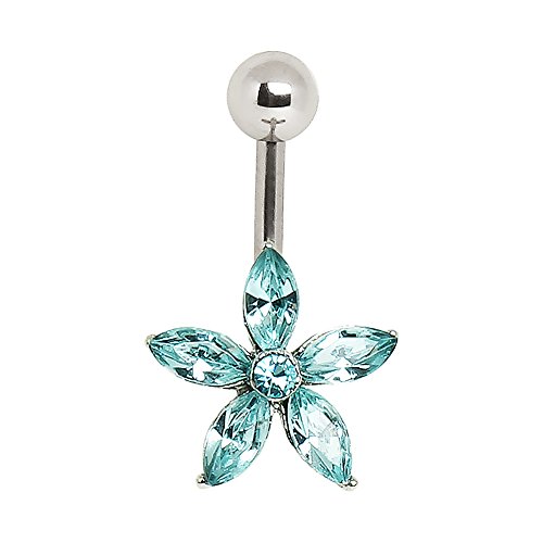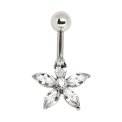 (Cocobul Body Jewelry)/Accessories/Belts Buckles/DIRECT FROM USA/316L Navel Ring with Gemmed Star Shaped Flower Dangle