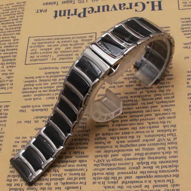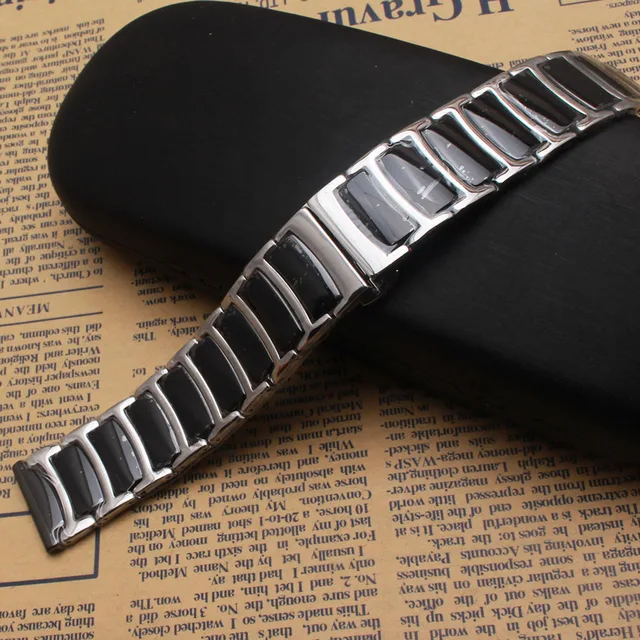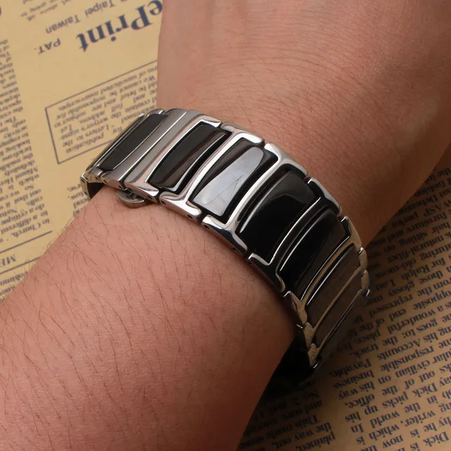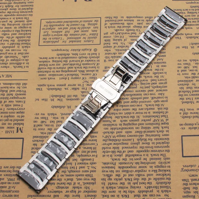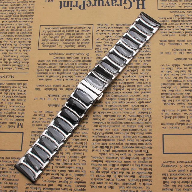 | [해외]블랙 세라믹 실버 스테인레스 스틸 금속 시계 스트랩 20 미리메터 22 미리메터 광택 시계 밴드 팔찌 butterfly 맞춤 기어 s3 |