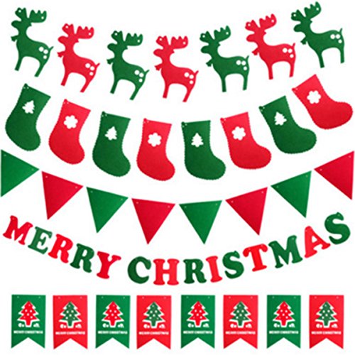 5Pcs Christmas Fabric Felt Hanging Buntings Garland Banner String Party Flag Decor Xmas Party Ornaments