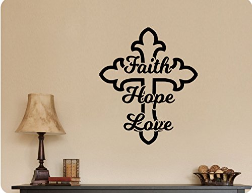 -. Title : 28"x24" Cross Faith Hope Love Shape Christian Values Wall Decal Sticker Art Mural Home DŽcor Quote